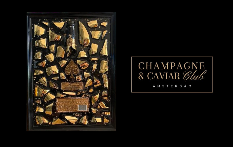 Schilderij is gemaakt met de fles: Armand de Brignac Ace of Spades Brut Gold champagne fles, dit is een luxe en verfijnde champagne uit de beroemde Champagne-regio in Frankrijk.