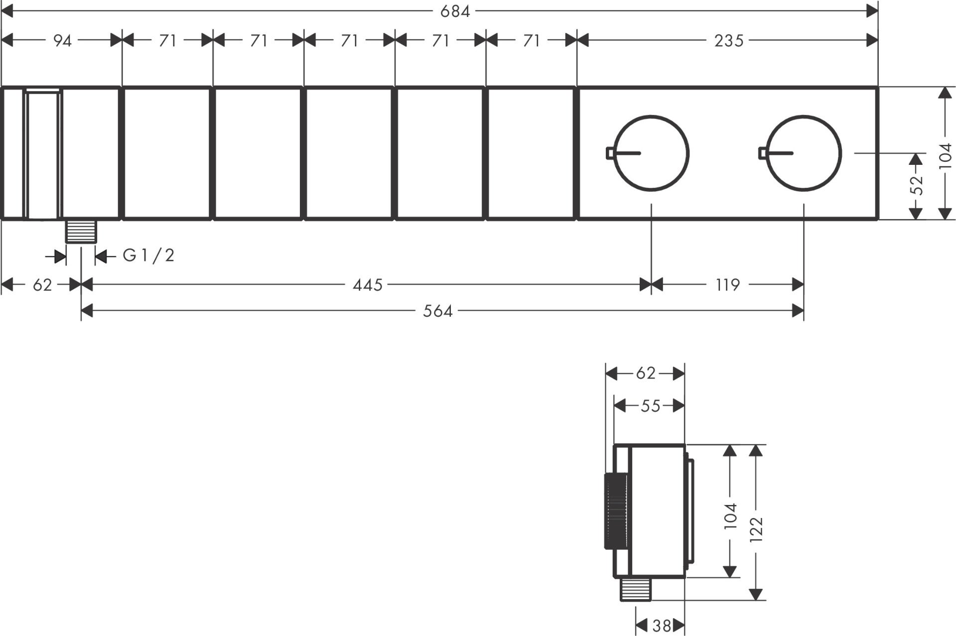 1107. AXOR inbouw douchekraan (5weg) - 'GOLD'